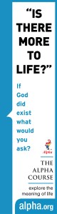 This coming July 17th at 6pm we will be offering our next introductory course to Alpha. It will include a dinner and a video at the church building, 46 N. Franklin Ave. This is a great course for those interested to learn more about Christianity in an open atmosphere of frank dialogue. For more information click on the link, Alpha, which will take you to our page on this important study or listen to this clip .